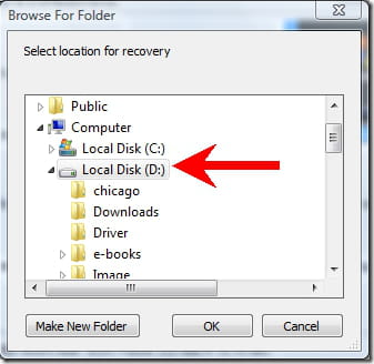 अब उस लोकेशन को चुनिए जहां फाइल रिकवर की जाएगी. यह उससे अलग जगह होनी चाहिए जहां यह फाइल डिलीट होने से पहले हुआ करती थी. फिर